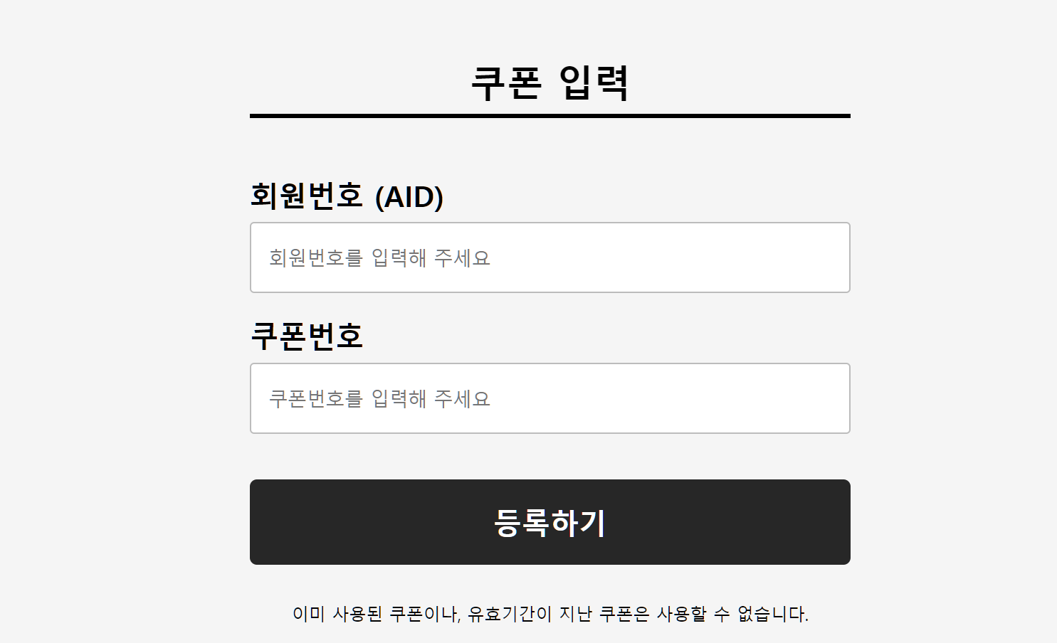 위 사이트에서 회원번호와 쿠폰번호를 입력해 쿠폰을 등록할 수 있습니다.